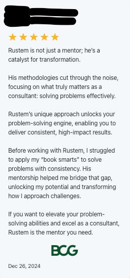 If you are an MBB consultant and experience the same challenges Jake faced, ping me in DM to discuss how I can help you with my coaching program.