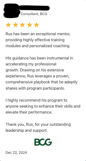 If you're a senior MBB consultant and feel like you're plateauing, I can help you transform your performance.